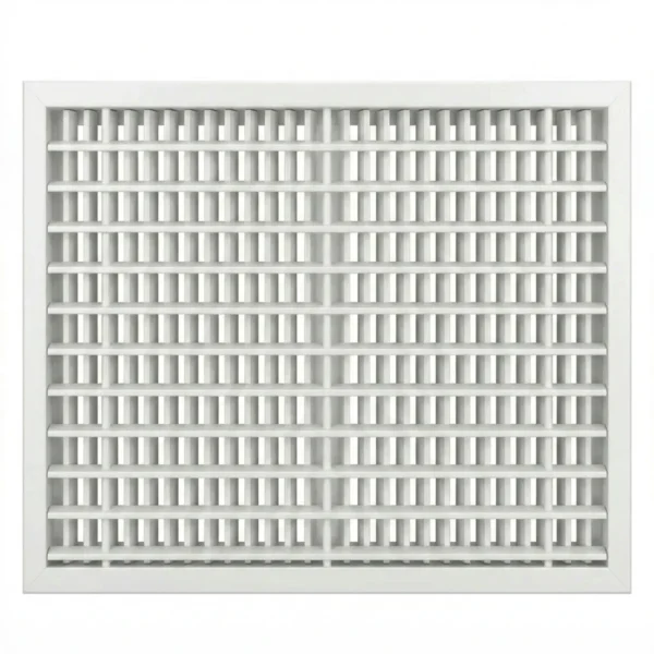 Bocchetta di mandata e ripresa in alluminio a singolo filare di barre fisse orizzontali, deflessione 15°, cornice 25 mm. Con Filtrina. Colorazione Alluminio.