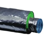 Condotto flessibile termo isolato con condotto interno in alluminio/poliestere rivestito con materassino termoisolante in fibra di poliestere ricoperto esternamente da multistrato in all/poliestere.