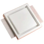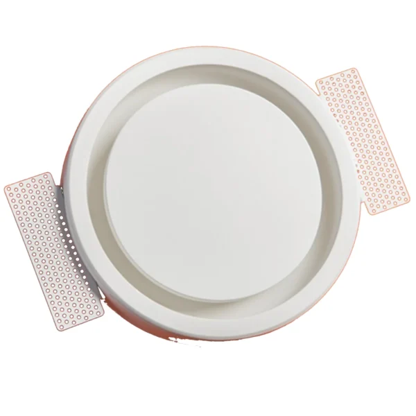 Diffusore aria circolare senza cornice per integrazione estetica a soffitto/parete in cartongesso.