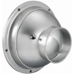 Diffusore circolare, ad alette fisse, a lancio elicoidale, in acciaio RAL 9016. Versione bassa altezza.