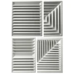 Diffusore quadrato da soffitto a 3 direzioni di lancio in alluminio anodizzato.