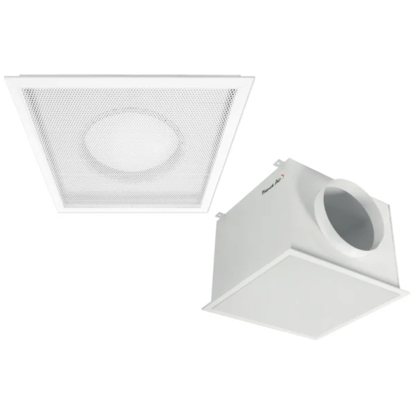Diffusore quadrato di ripresa in acciaio a schermo forellinato, RAL 9003 Mat. Attacco Laterale.