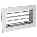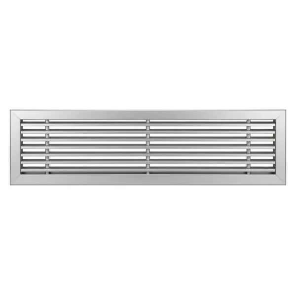 Griglie lineari in alluminio, a singolo filare di alette fisse orizzontali deflessione 0°/15°, cornice 20 mm. Colorazione Alluminio.