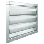 Serranda di sovrappressione rettangolare da parete, telaio in acciaio inox 316 e alette mobili in alluminio passo 100 mm per espulsione.
